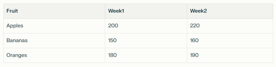 Sales data for fruits (units sold).