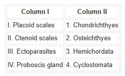Match each item in Column I with one item in Column II and choose your answer from the codes given below.