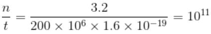 The energy released by the fission of one uranium atom is 200 MeV. The number of fissions required per second to produce 3.2 W of power is