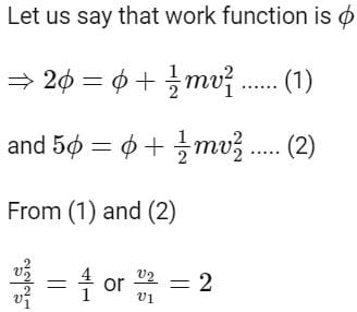 Radiation of two photon energies twice and five times the work function of metal are incident sucessively on the metal surface. The ratio of the maximum velocity of photoelectrons emitted is the two cases will be