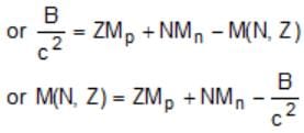 Mp denotes the mass of a proton and Mn that of a neutron. A given nucleus of binding energy B contains Z protons and N neutrons. The mass M (N, Z) of the nucleus is given by
