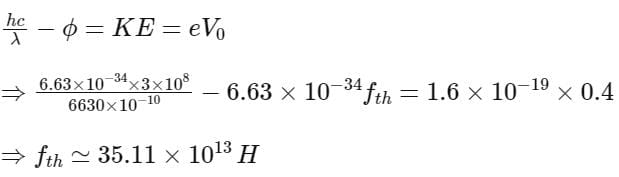 is 0.42 V. If the threshold frequency is x × 1013 /s, where x is _________ (nearest integer).