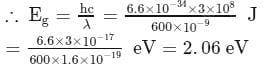 In a photodiode, the conductivity increases when the material is exposed to light. It is found that conductivity changes only if the wavelength is less than 600 nm. What is the bandgap?
