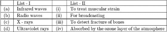 Match List - I (Electromagnetic wave type) with List - II (Its association/application) and select the correct option from the choices given below the lists :