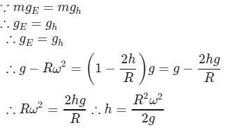 Let ω is the angular velocity of the earth's rotation about its own axis and acceleration due to gravity on the earth's surface at the poles is g. An object weighed by a spring balance gives the same reading at the equator, as well as at a height h above the poles (h ≪ R). What is the value of h ?
