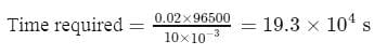 Electrolysis of dilute aqueous NaCl solution was carried out by passing 10 mA current. The time required to liberate 0.01 mol of H2 gas at the cathode is (1 F = 96500C mol−1)