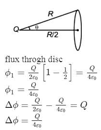 A charge particle having charge Q is placed at the centre of hollow hemispherical sphere whose a portion is removed as shown. If the radius of the hollow sphere is R, then flux through the remaining surface is equal to Q/xε0. The value of x is?