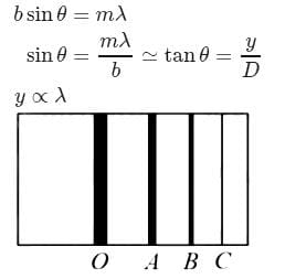 The position of the direct image obtained at O, when a monochromatic beam of light is passed through a plane transmission grating at normal incidence is shown in figure. The diffracted images A, B and C correspond to the first, second and third order diffraction. When the source is replaced by another source of shorter wavelength