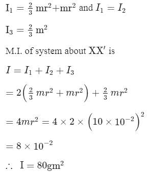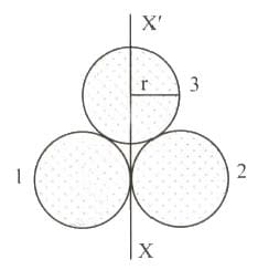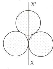 Three identical hollow sphere, each of mass 2kg and radius 10cm are placed as shown in diagram.Consider an axis XX′ which is touching to two shells and passing through diameter of third shell. Calculate Moment of inertia of the system consisting of these three spherical shells XX′ axis in g m2?