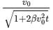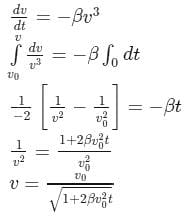 The engine of a motorboat is switched off when its speed is v0. If motorboat experiences variable acceleration as dv/dt = −βv3, where β is a positive constant and v instantaneous speed, then the speed of motorboat after t second (t = 0 when switch is off) is