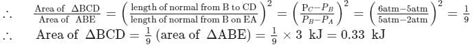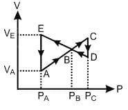 Figure shows a cyclic process ABCDBEA performed on an ideal cycle. If PA = 2 atm, PB = 5 atm and PC = 6 atm, VE – VA = 20 litre, find the work done (in KJ) by the gas in the complete process. (1 atm. pressure = 1 × 105 Pa)