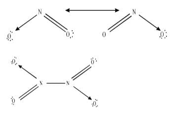 An oxide of nitrogen is reddish brown and paramagnetic at room temperature but it decolourises and also loses its paramagnetism on freezing it. The oxide at room temperature is