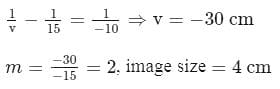 A 2.0 cm object is placed 15 cm in front of a concave mirror of focal length 10 cm. What is the size and nature of the image?