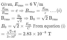 In an electromagnetic wave in free space the root mean square value of the electric field is Erms = 6 V/m.