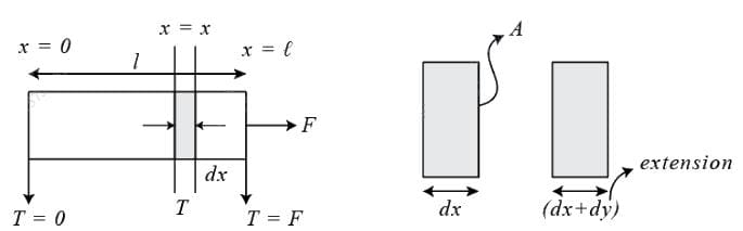 A uniform rod of length l is acted upon by a force F in a gravity-free region, as shown in the figure. If the area of cross-section of the rod is A and it's Young's modulus is Y, then the elastic potential energy stored in the rod due to elongation is