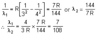If λ1 and λ2 are the wavelengths of the first members of Lyman and Paschen series, respectively, then λ1 : λ2 is: