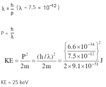 In an electron microscope, the resolution that can be achieved is of the order of the wavelength of electrons used. To resolve a width of 7.5 × 10-12 m, the minimum electron energy required is close to:
