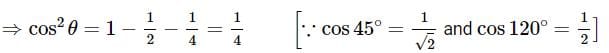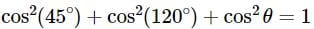 A line AB in three-dimensional geometry makes angles 45° and 120° with the positive x - axis and the positive y-axis respectively. If AB makes an acute angle e with the positive z -axis, then e equals: