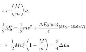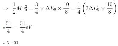 A particle of mass 200 MeV/c2 collides with a hydrogen atom at rest. Soon after the collision, the particle comes to rest, and the atom recoils and goes to its first excited state. The initial kinetic energy of the particle (in eV) is N/4 . The value of N is (given the mass of the hydrogen atom to be 1 GeV/c2) ___________. (in integers)