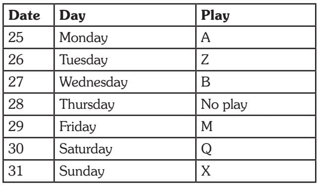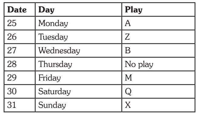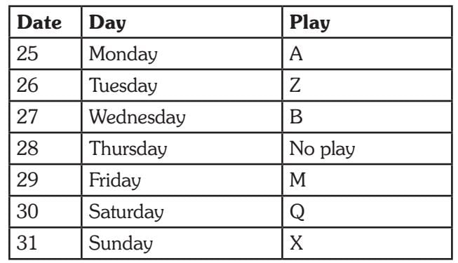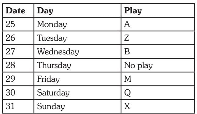 (iii) Play Z was held on 26th and play X was held on 31st of the same month.