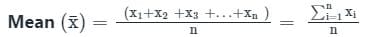 Arithmetic mean = (Sum of all observations) / (Total number of observations)
