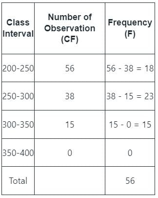 ∴ The Number of observation in between 250-300 = 38 - 15 = 23.