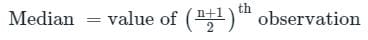 Median = {(n + 1)/2}th term when n is odd