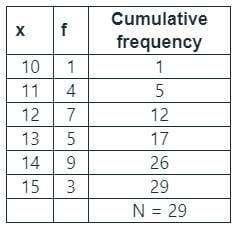 Total terms in the given data, (n) = 15 (It is odd)