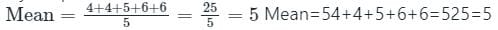 1. Mean: Mean = 4 + 4 + 5 + 6 + 65 = 255 = 5" id="MathJax-Element-1-Frame" role="presentation" style="position: relative;" tabindex="-1">Mean = 4 + 4 + 5 + 6 + 65 = 255 = 5" id="MathJax-Element-24-Frame" role="presentation" style="position: relative;" tabindex="0">
