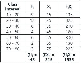 The mean of grouped data is given by,