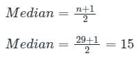 So, 29 is ODD number, For odd number, the Median formula is,