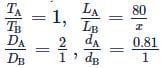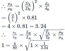 Two strings A and B of lengths, LA = 80 cm and LB = x cm respectively are used separately in a sonometer. The ratio of their densities is 0.81. the diameter of B is one-half that of A. if the strings have the same tension and fundamental frequency the value of x is