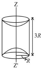 A solid cylinder has a radius R and height 3R with mass density ρ. Now, two half-spheres of radius R are removed from both ends. The moment of inertia of the remaining portion about axis ZZ' can be calculated as 29/6KπR⁵ρ. Find K.