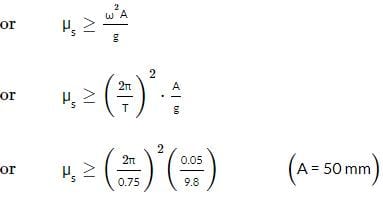 With the assumption of no slipping, determine the mass m of the block which must be placed on the top of a 6 kg cart in order that the system period is 0.75 s. What is the minimum coefficient of static friction μS for which the block will not slip relative to the cart if the cart is displaced 50 mm from the equilibrium positions and released?