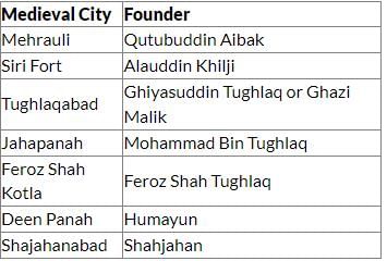 Which of the following medieval cities of Delhi is correctly matched to its founders?