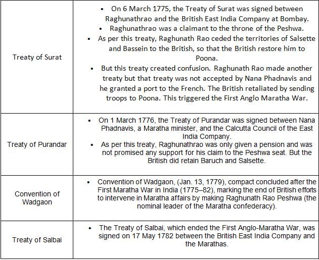 Chronologically arrange the following treaties/conventions signed between the Marathas and the British (starting with the earliest) :