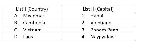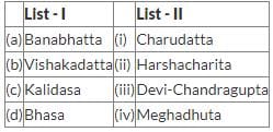 Match List I with List II and select the correct answer using the code given below the Lists: