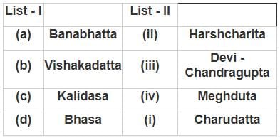 Match List - I with List - II and choose the correct answer from the codes given below :