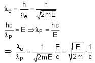 An electron (of mass m) and a photon have the same energy E in the range of a few eV. The ratio of de-Broglie wavelength associated with the electron and the wavelength of the photon is:
