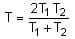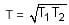 Two ideal Carnot engines operate in cascade (all heat given up by one engine is used by the other engine to produce work) between temperatures, T1 and T2. The temperature of the hot reservoir of the first engine is T1 and the temperature of the cold reservoir of the second engine is T2. T is temperature of the sink of first engine which is also the source for the second engine. How is T related to T1 and T2, if both the engines perform equal amount of work?