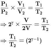 Under an adiabatic process, the volume of an ideal gas gets doubled. Consequently, the mean collision time between the gas molecule changes from τ1 to τ2. If