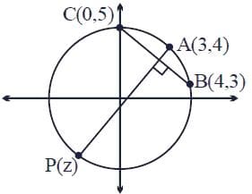Let a circle C in complex plane pass through the points z1 = 3 + 4i, z2 = 4 + 3i and z3 = 5i. If z(≠ z1) is a point on C such that the line through z and z1 is perpendicular to the line through z2 and z3, then arg(z) is equal to: