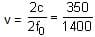 A stationary observer receives sound from two identical tuning forks, one of which approaches and the other one recedes with the same speed (much less than the speed of sound). The observer hears 2 beats/sec. The oscillation frequency of each tuning fork is v0 = 1400 Hz and the velocity of sound in air is 350 m/s. The speed of each tuning fork is close to: