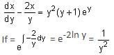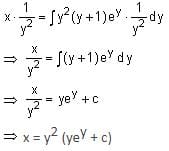 If x = x(y) is the solution of the differential equation ydy/dx = 2x + y3 (y + 1)ey, x(1) = 0; then x(e) is equal to: