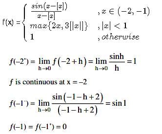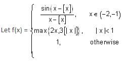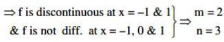 Where [t] denotes greatest integer ≤ t. If m is the number of points where f is not continuous and n is the number of points where f is not differentiable, then the ordered pair (m, n) is