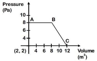 The magnitude of work done by a gas that undergoes reversible expansion along the path ABC shown in the figure is ______. (Nearest integer)