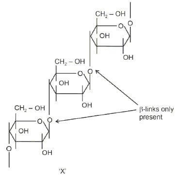 A polysaccharide 'X' on boiling with dil. H2SO4 at 393 K under 2-3 atm pressure yields 'Y'. 'Y' on treatment with bromine water gives gluconic acid. 'X' contains β-glycosidic linkages only. Compound 'X' is