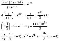Let y = y(x) be the solution of the differential equation (x + 1)y' - y = e3x(x + 1)2, with y(0) = 1/3. Then, the point x = -4/3 for the curve y = y(x) is: