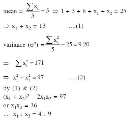 The mean of five observations is 5 and their variance is 9.20. If three of the given five observations are 1, 3 and 8, and the ratio of other two observations is (k : 2k+1). Find the value of k.