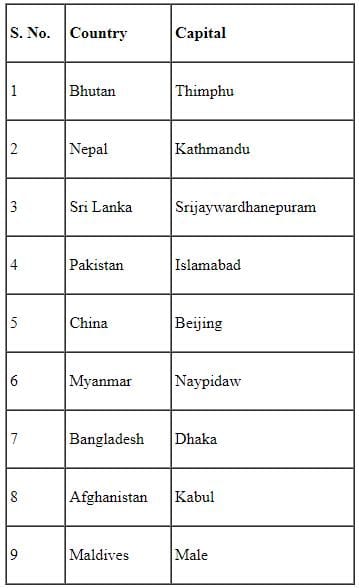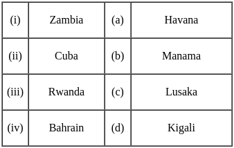 Match the following countries with their capitals: